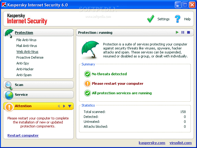 Скачать Kaspersky Internet Security 7.0.0.55 бесплатно для Windows без регистрации. Ключи и активация не требуются. На сайте представлена русская или английская версия программы Kaspersky Internet Security 7.0.0.55 не требующая серийник. Если программа условно-бесплатная, то она имеет демо режим для проверки её работы.
